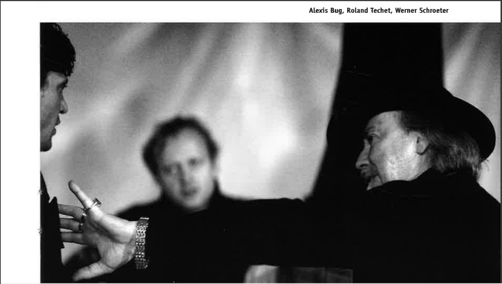 Flyer der Uraufführung des Stücks „Wir Später“, Sophiensäle Berlin 2005.Bug als Robert Schumann in „Die Schönheit der Schatten“ von Werner Schroeter, Düsseldorf 2006