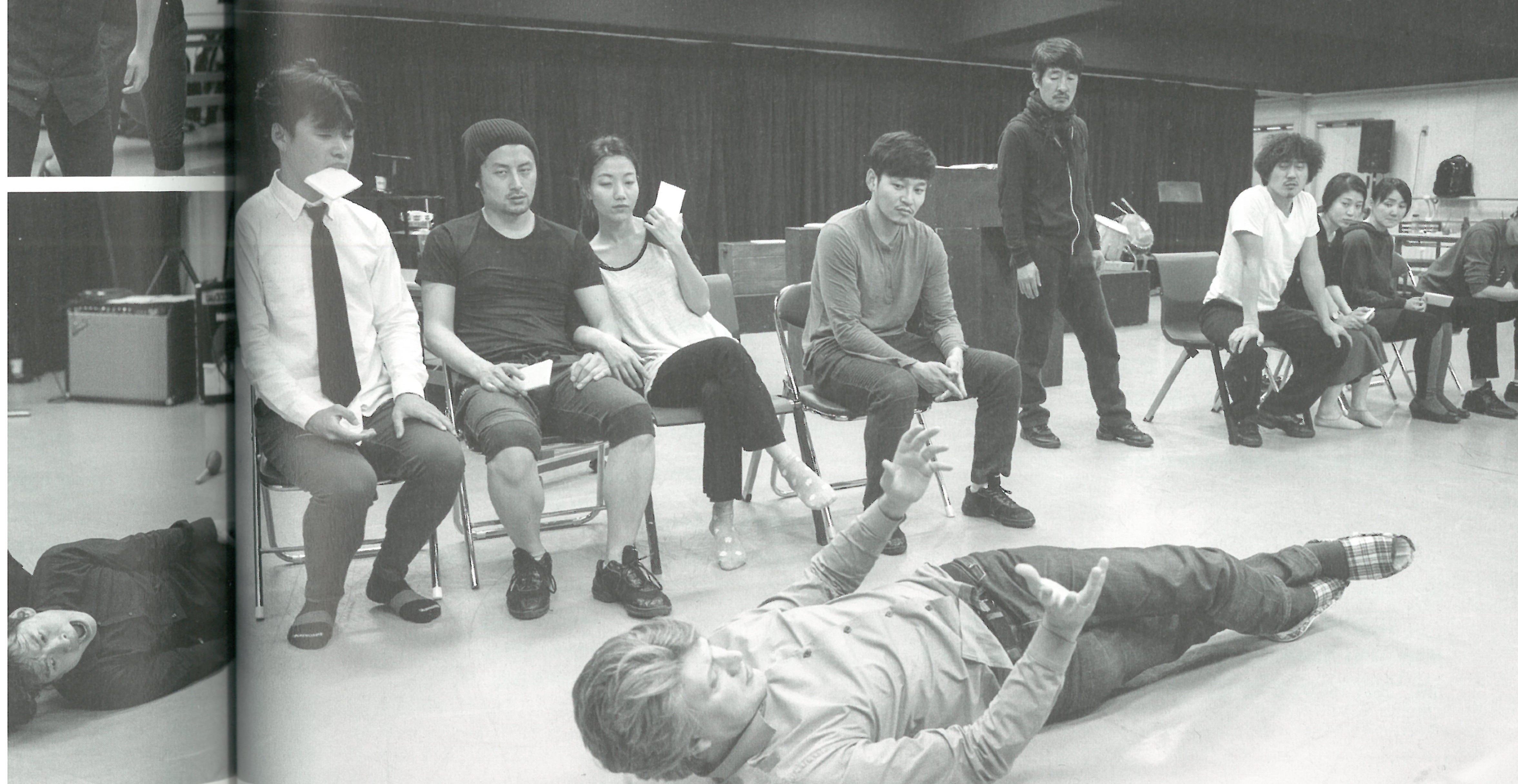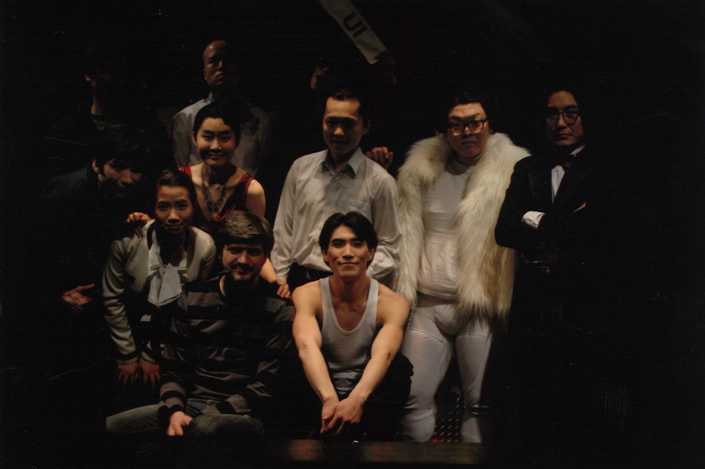 Koreanische Erstaufführung ! von Brechts „Der Aufstieg des Arturo Ui“ 2012. (Übersetzung und Dramaturgie: Rhie Won Yang). Alexis Bug und sein Hauptdarsteller Lee Seung Heon mit Ensemble im Guerilla Theater Seoul.